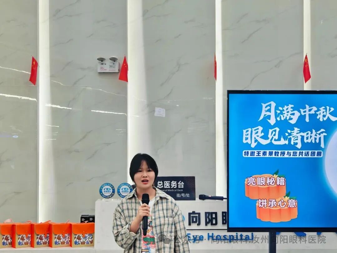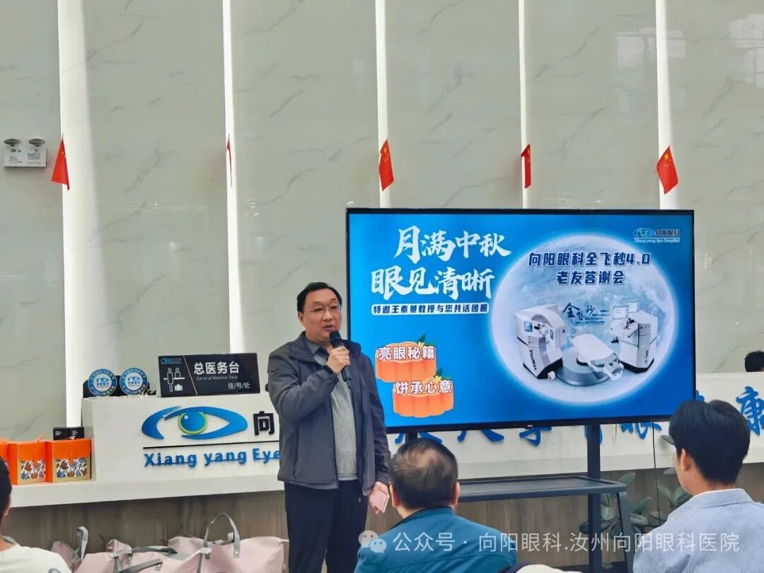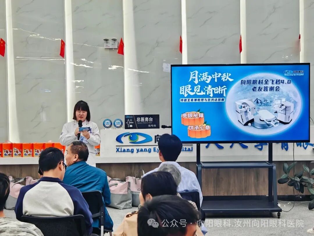 10月1日,国庆佳节,中秋将近。在这样一个双节同庆的美好时刻,汝州向阳眼科医院东院区一楼门诊大厅内暖意融融,“月满中秋 眼见清晰”全飞秒4.0老友见面会温馨启幕。现场新老朋友欢聚一堂,共赴一场关于“清晰视界”的光明之约。本次活动由汝州向阳眼科医院大视光中心主任陈莹主持。