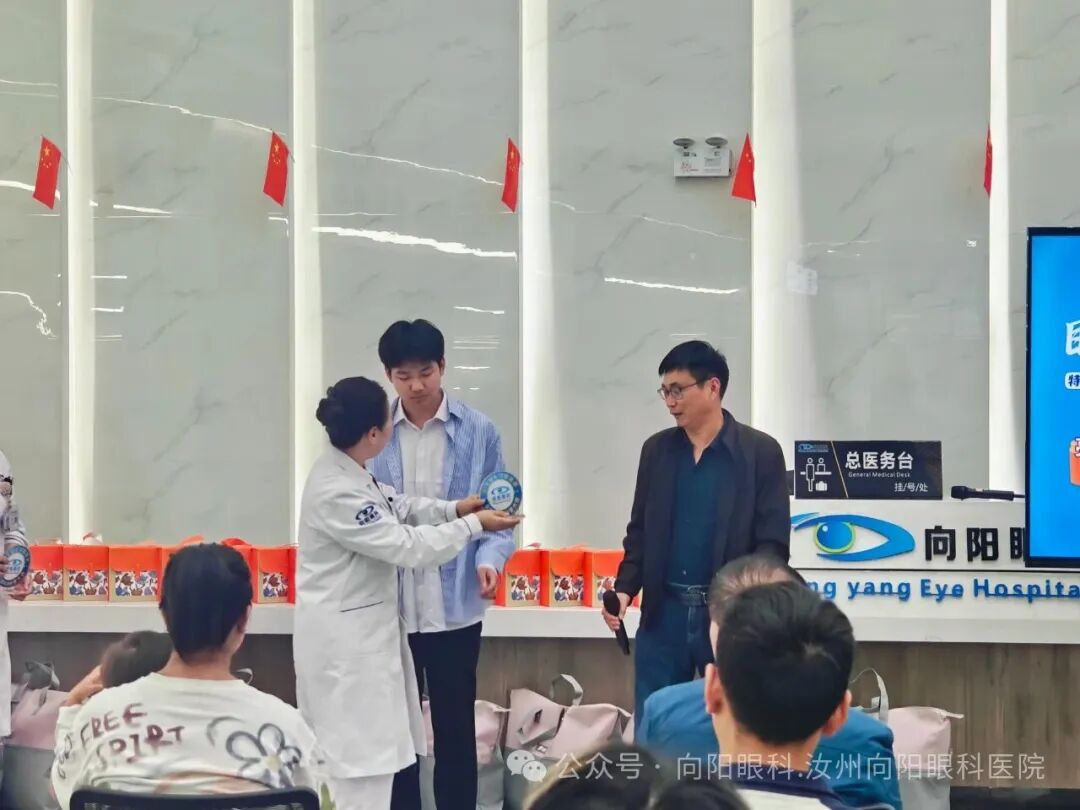 活动中,王素景教授为两位全飞秒4.0术后患者颁发了“全飞秒4.0科普大师”奖牌,以感谢他们积极分享术后体验,助力眼健康科普。