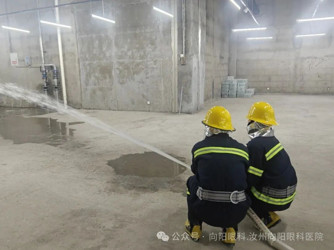 为进一步增强演练的真实性和有效性,本次演练特别设置了“出真水”环节。演练人员在医院的负一楼区域,实际连接消防栓,进行了喷水操作演练。水枪射出强有力的水柱。这一环节真实检验了消防设施的有效性及队员对固定消防设施的实际操作能力,确保关键时刻消防系统能够拉得出、用得上。